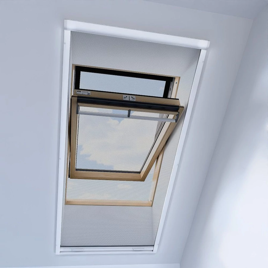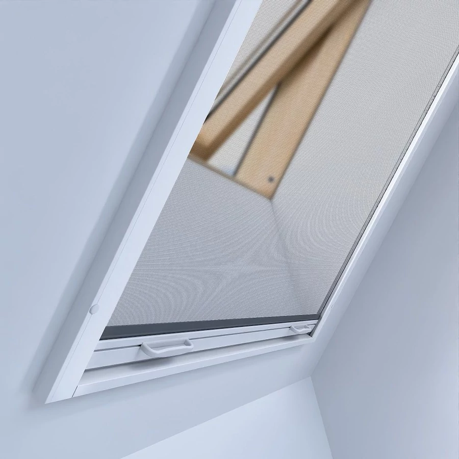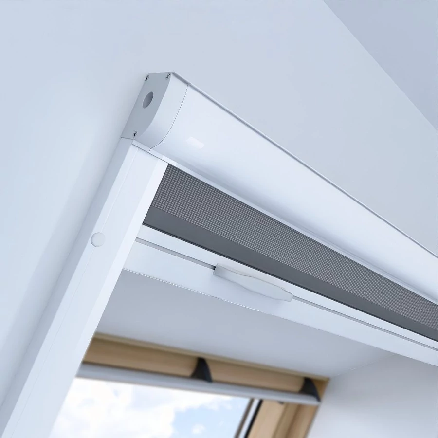 • Rolovací síť proti hmyzu pro střešní okna se umísťuje do roviny stěny, tedy ne přímo na střešní okno.